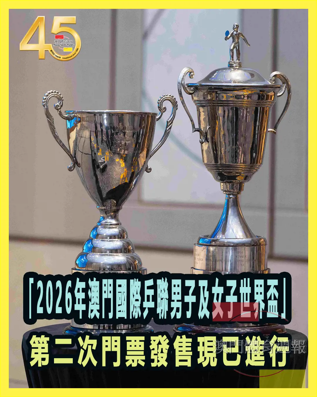 由國際乒乓球聯合會(ITTF)授權,體育局、銀河娛樂集團及世界乒乓球管理集團有限公司主辦、澳門乒乓總會協辦的「2026年澳門國際乒聯男子及女子世界盃 ─ 由銀河娛樂集團呈獻」將於本年3月30日至4月5