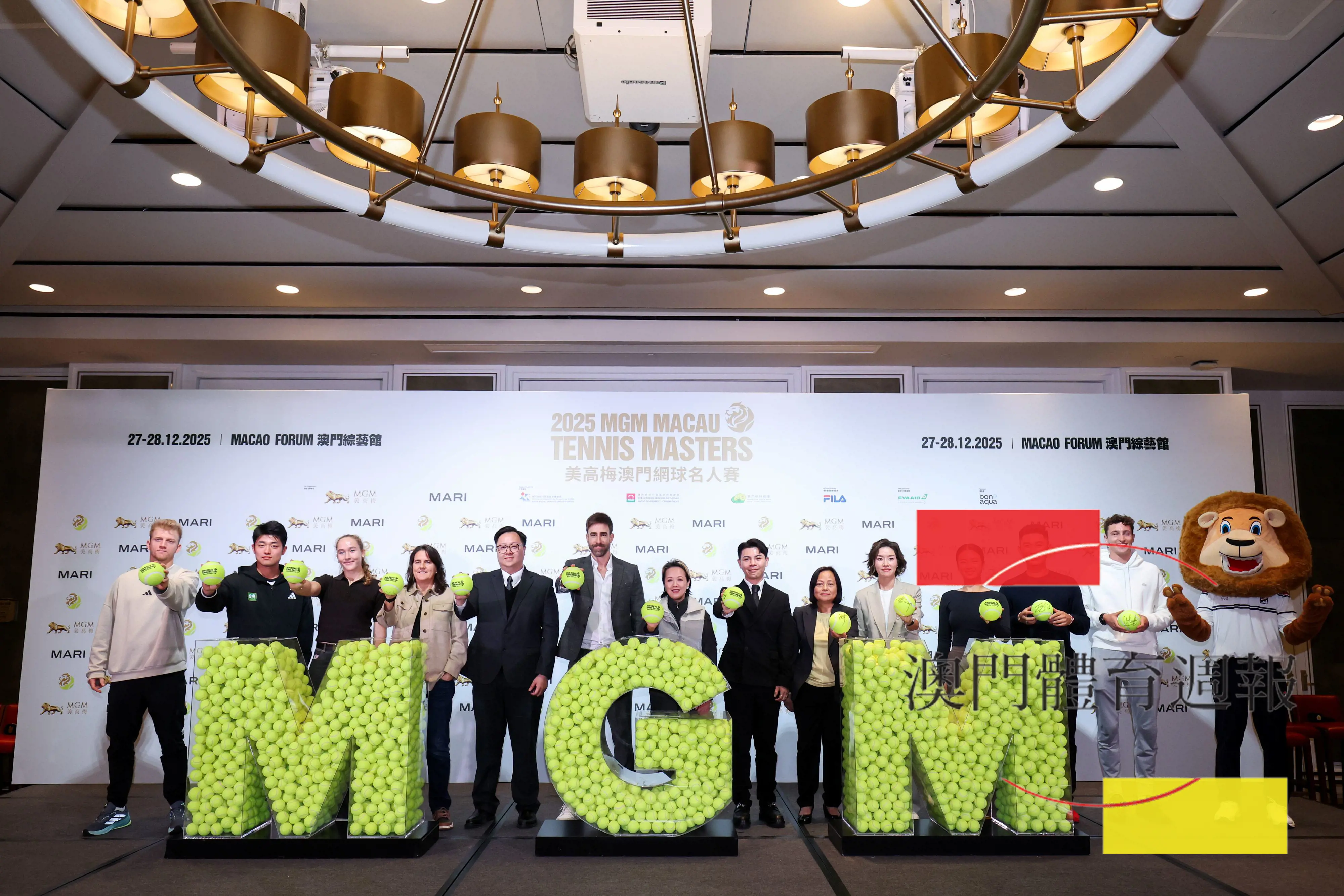 由美高梅與MARI Group聯合主辦,體育局、旅遊局及澳門網球總會支持的「2025美高梅澳門網球名人賽」將於明 (27日)開始一連兩日於澳門綜藝館舉行,主辦單位及核心合作夥伴今日假美獅美高梅維天閣舉