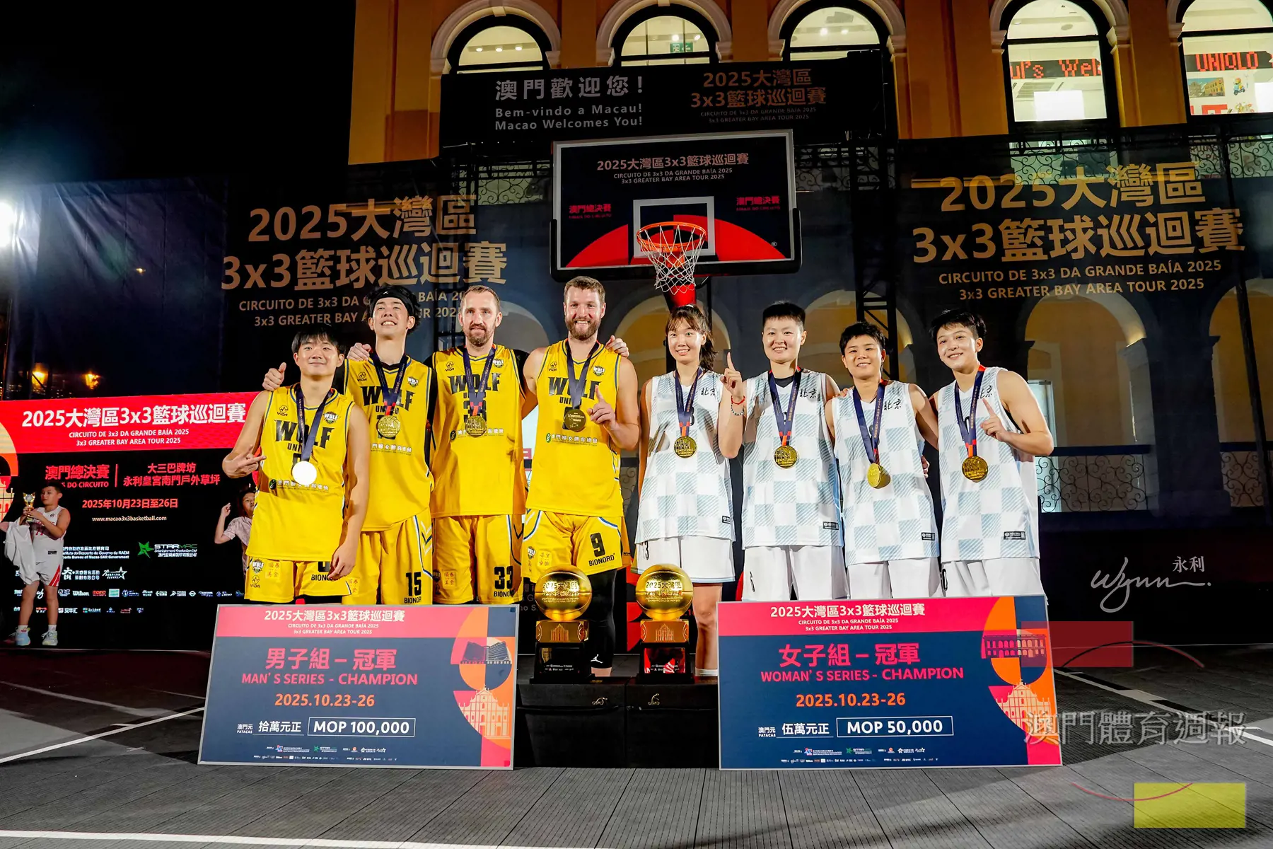 由體育局及澳門星娛樂主辦,澳門籃球總會、齊睿體育及追星文化傳媒(珠海市橫琴)協辦,永利渡假村(澳門)作場地贊助支持的“2025大灣區3×3籃球巡迴賽”澳門總決賽,昨(26日)舉行煞科戰,最終男子組及
