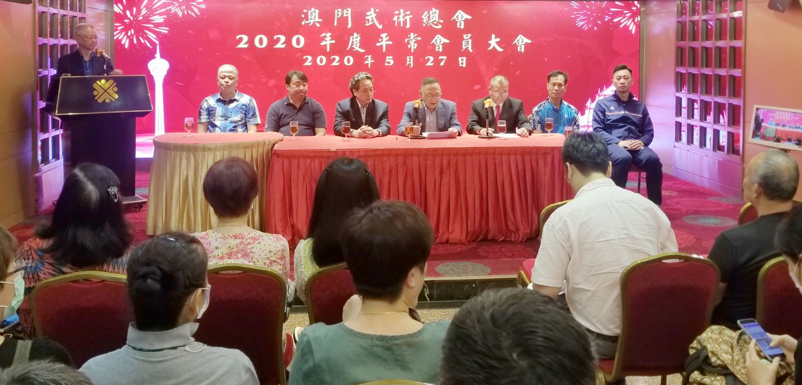 澳門武術總會於2020年5月27日(星期三)晚上7時30分,在聯邦大酒樓召開2020年度平常會員大會,出席的屬會代表共有63名。本次大會主要是總結總會在過去一年的會務工作以及議決行政架構補缺事宜