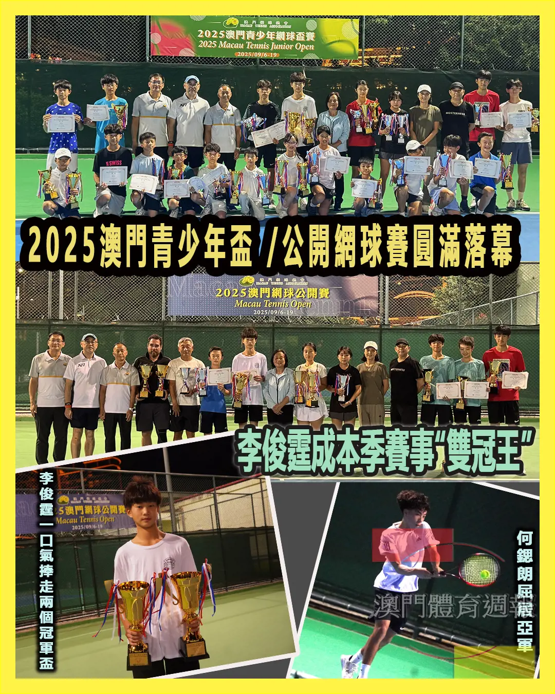 “2025澳門青少年盃”網球賽昨日進行最後一天的煞科賽,結果男子18歲組單打賽,結果李俊霆以局數六比二,六比四局數落兩盤擊敗何鍶朗,繼公開賽男單賽後再下一城奪得冠軍,成為本年度網球青少年盃及公開賽男單