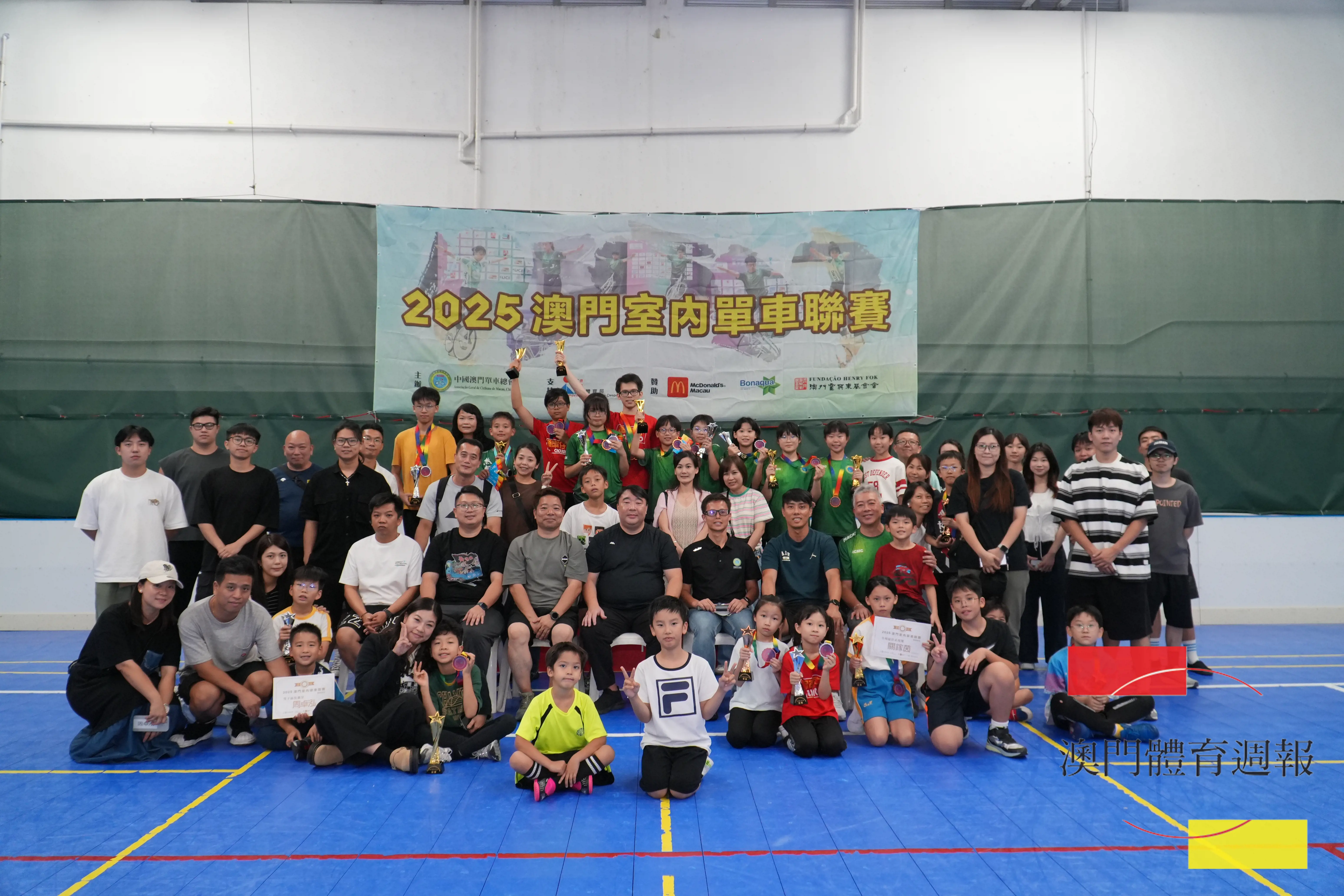 由澳門單車總會主辦的“2025澳門室內單車聯賽”9月27日下午五時在氹仔東北體育館舉行第四回合賽事。決出各組年度最終排名。全場大合照 第四回合賽事在9月27日舉行,合共進行U11小童組、U13、